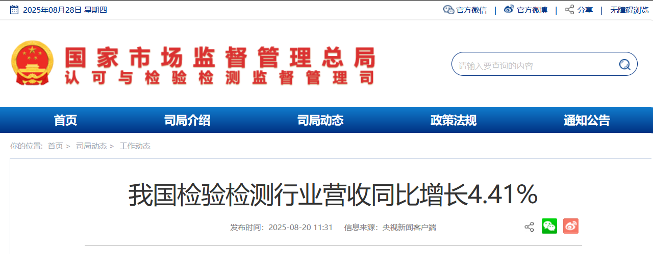 我國檢驗檢測行業(yè)營收同比增長4.41%